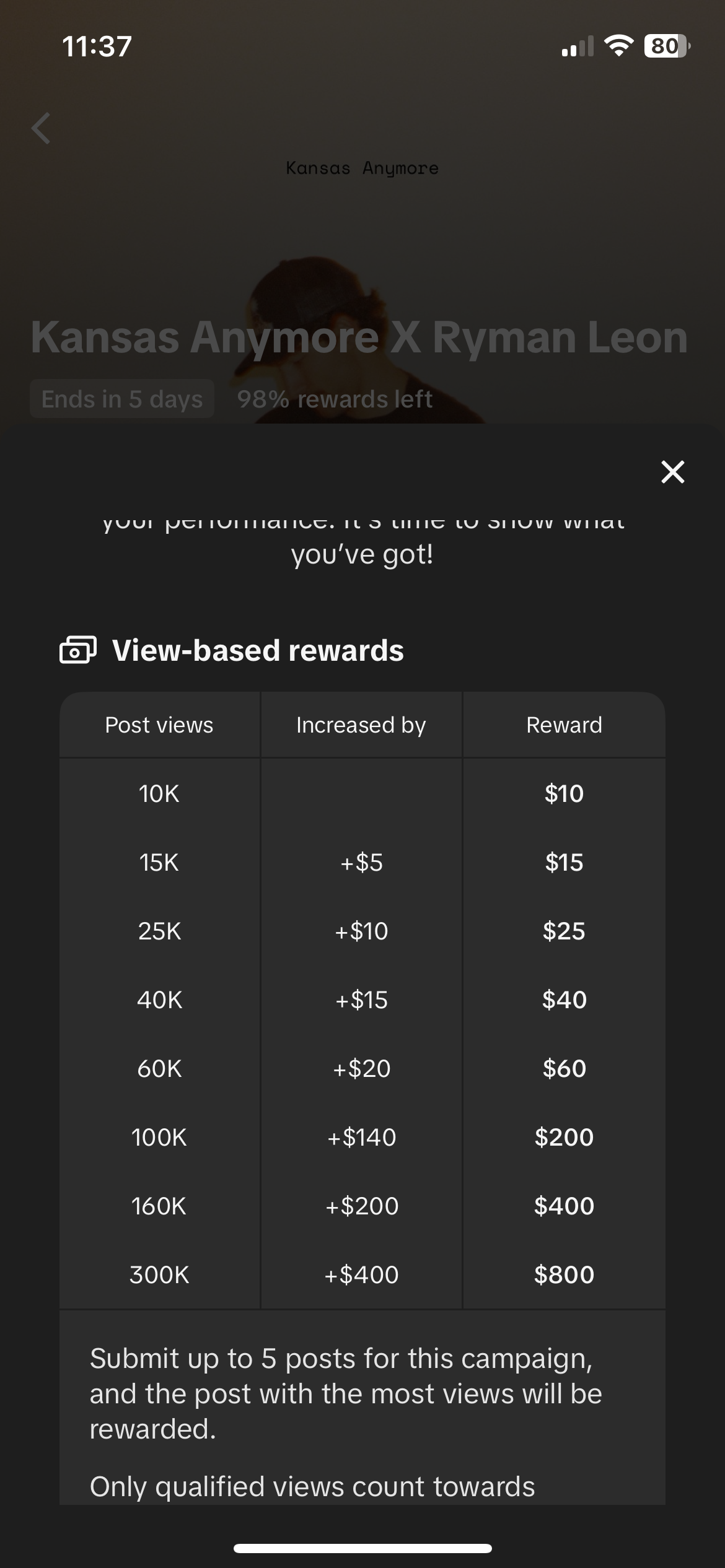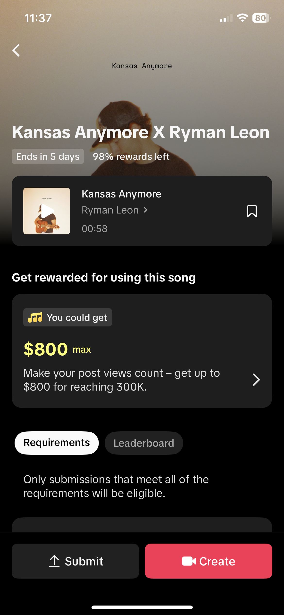 TikTok literally offers tasks like: “Grow your audience and earnings!” Complete a checklist, win a $20 coupon. Use a trending song, earn “up to $800!” — but only if you hit 300,000 views. Translation: promote a new artist’s song for free in hopes of a payout that might never come. And the desperate will do it — because they need that shot at $800.